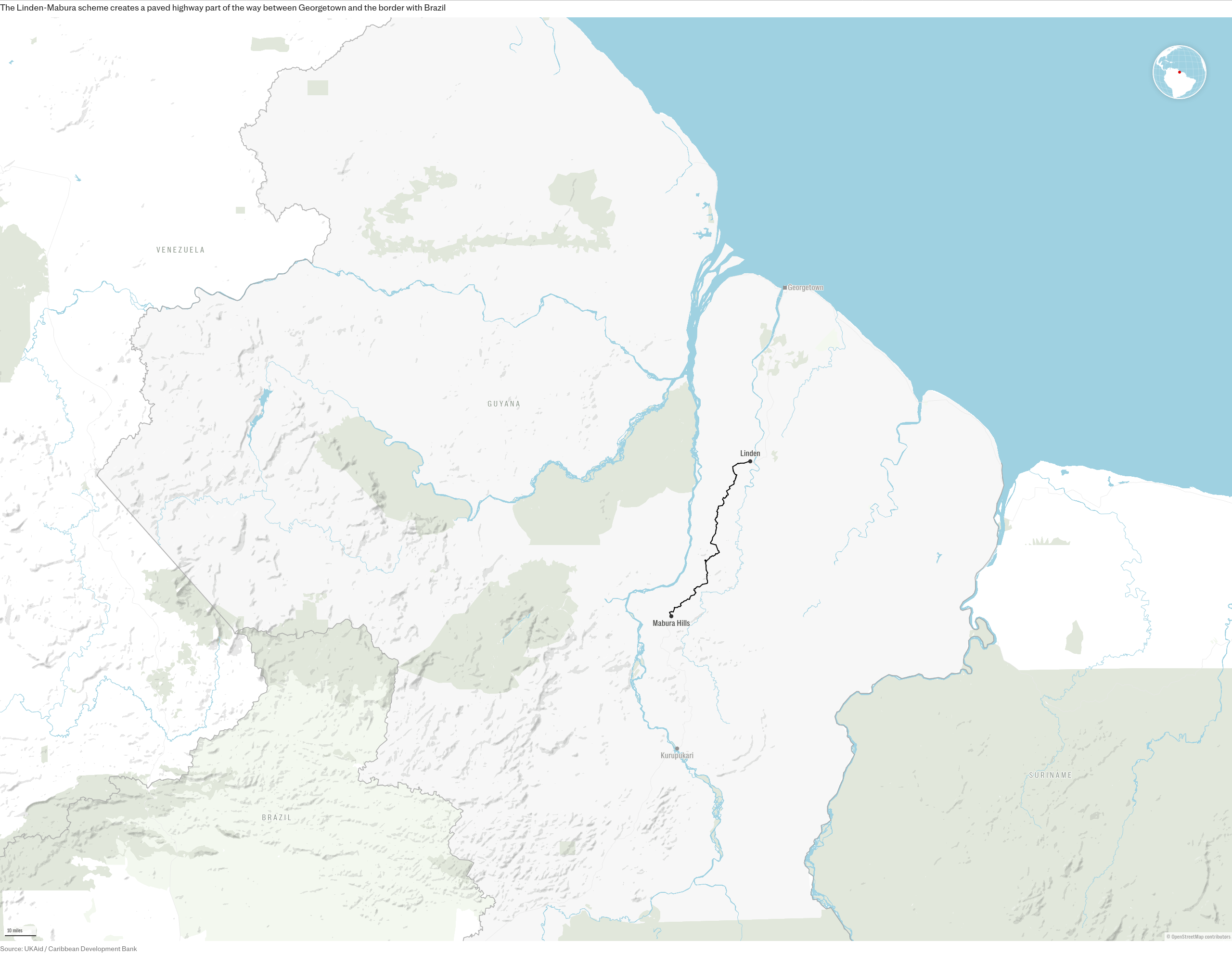 And it is backed – pushed, almost – by investors in Brazil, who see the road as a shortcut to the nearest deep-water port in Georgetown and a way to export goods from the Amazon to the Caribbean and North America.